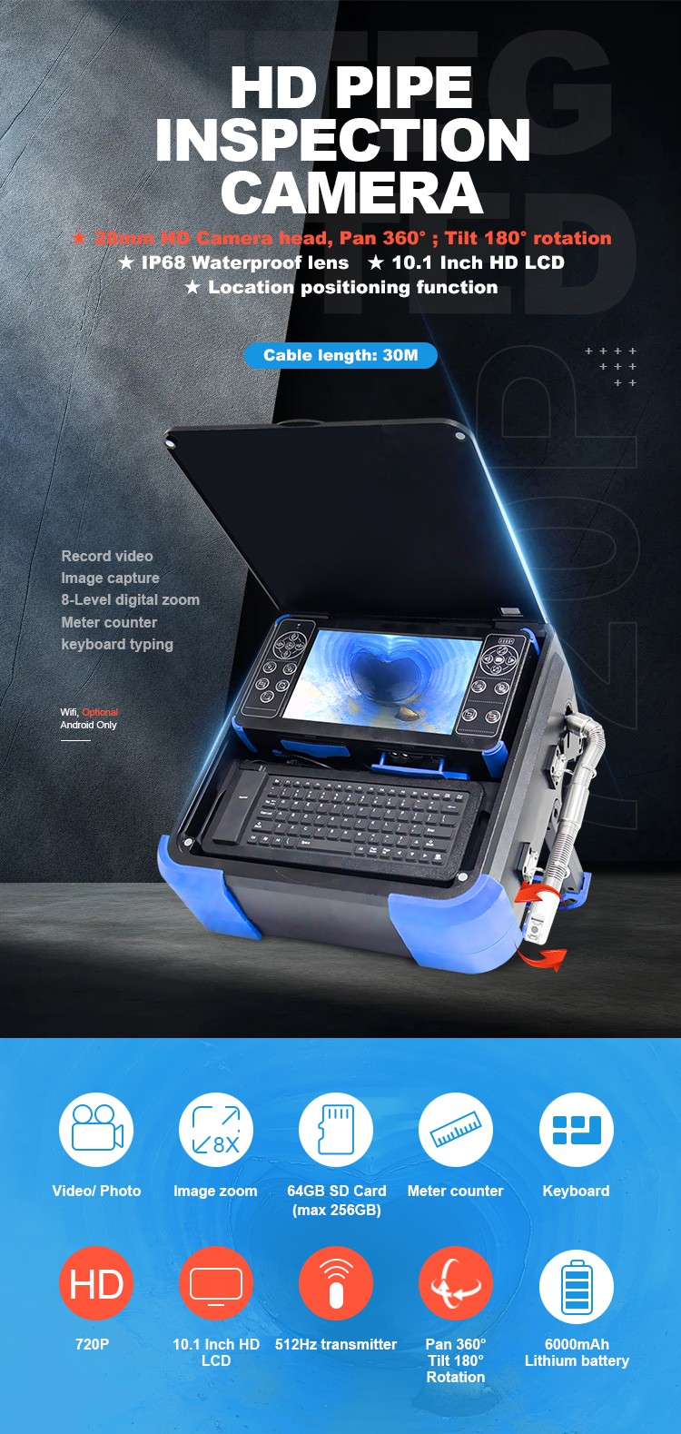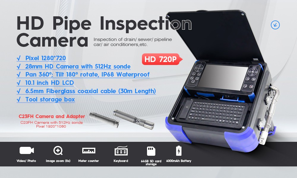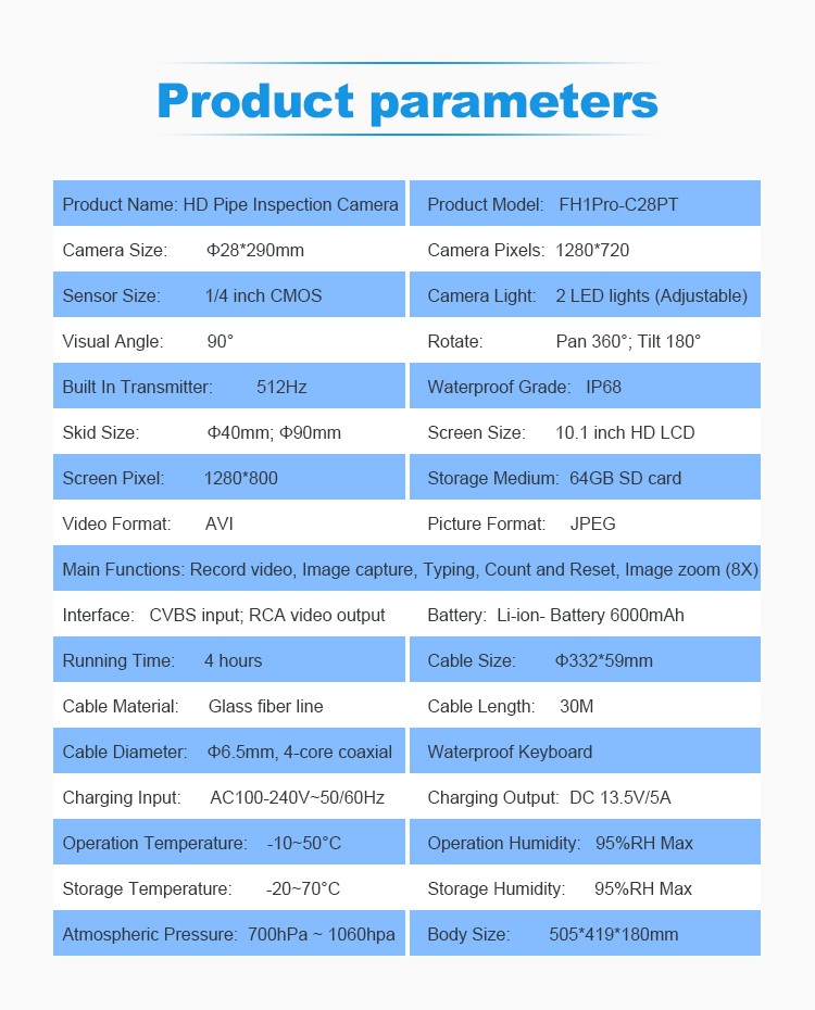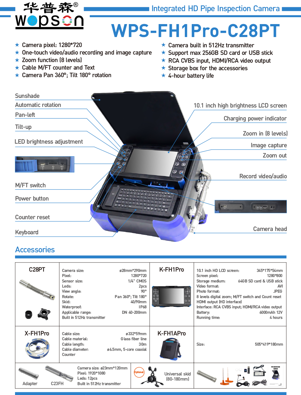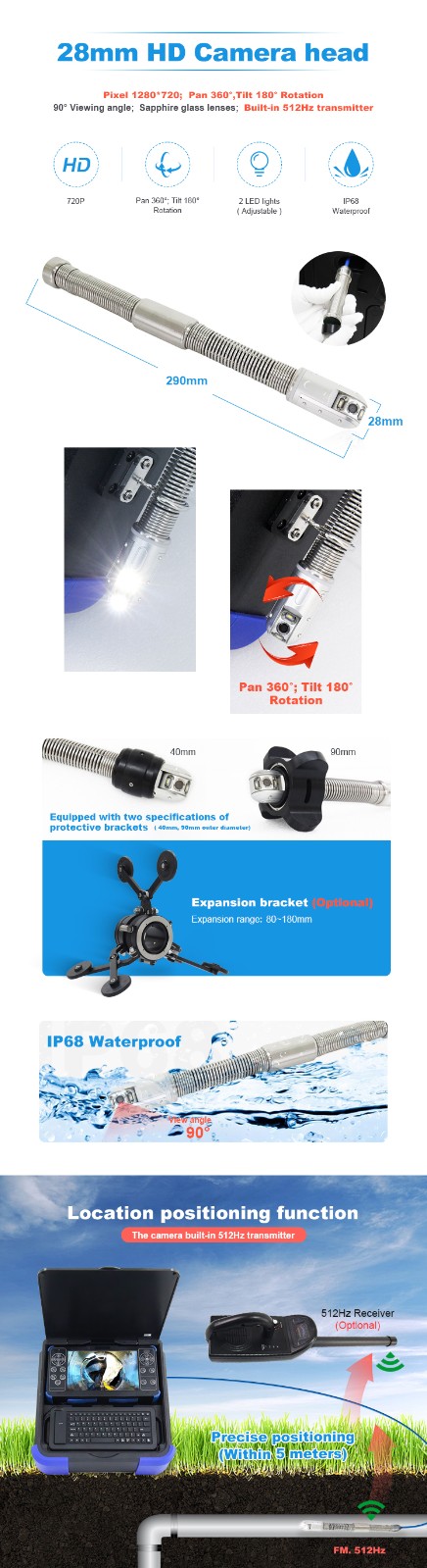 Home > Products > Pipe inspection camera > Dia 30-300mm pipes FH1PRO-C28PT