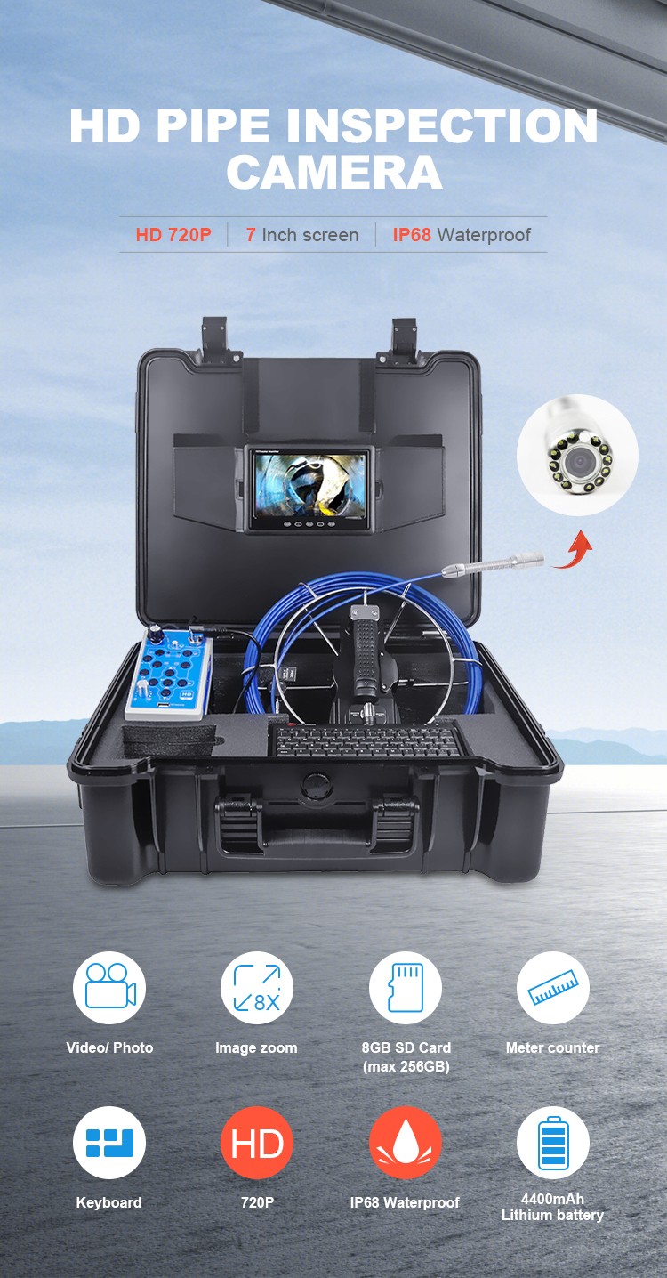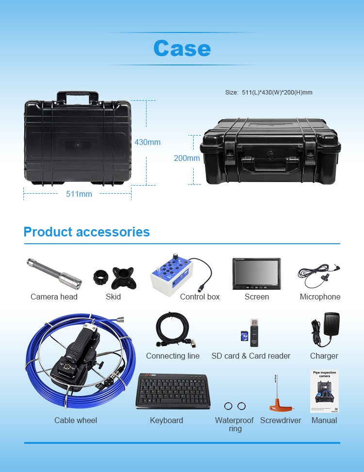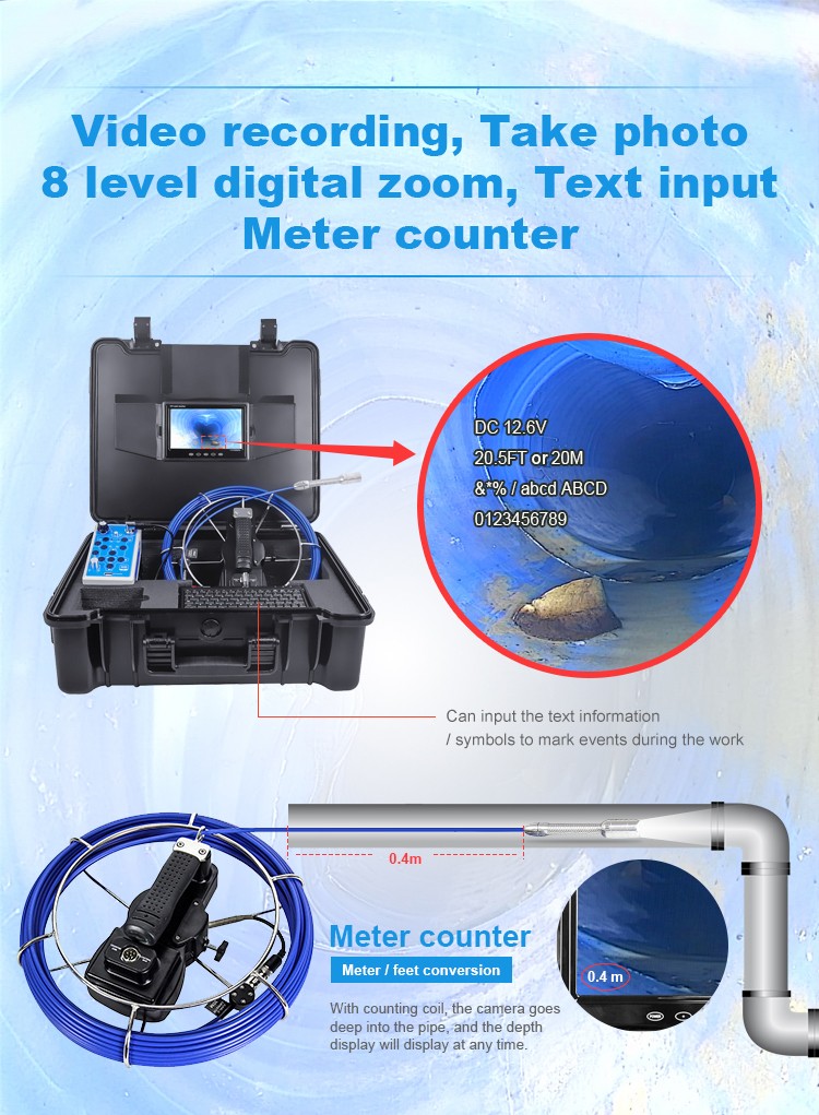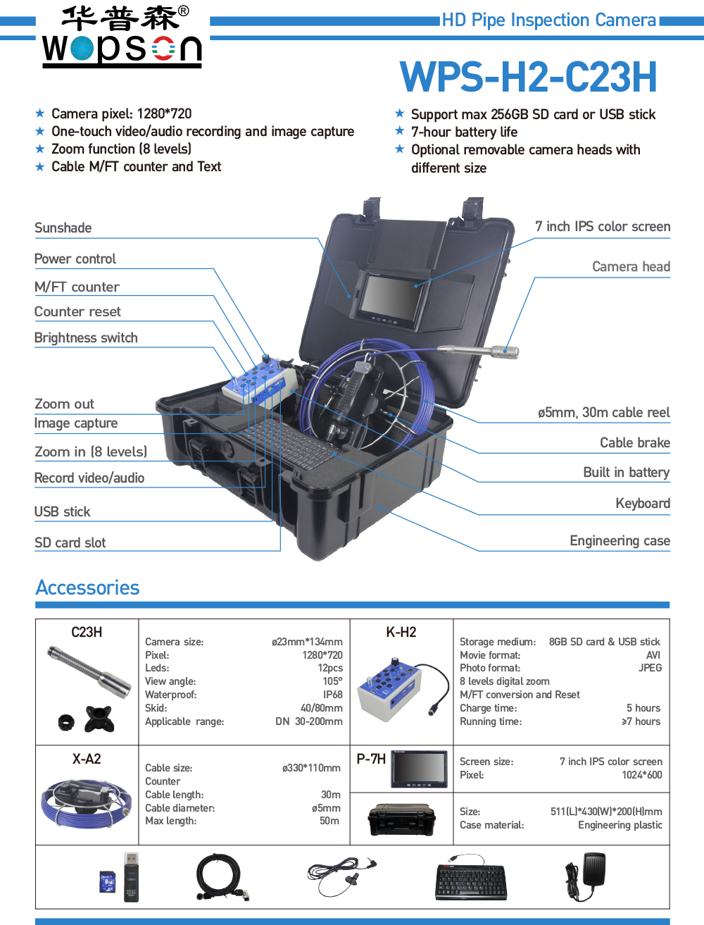 Home > Products > Pipe inspection camera > Dia 30-300mm pipes H2-C23H