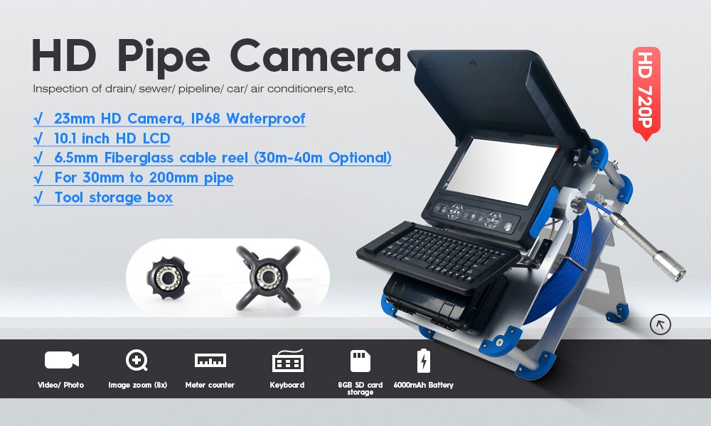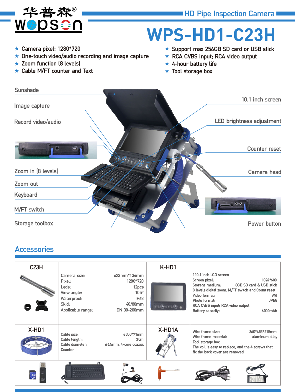 Home > Products > Pipe inspection camera > Dia 30-300mm pipes HD1-C23H