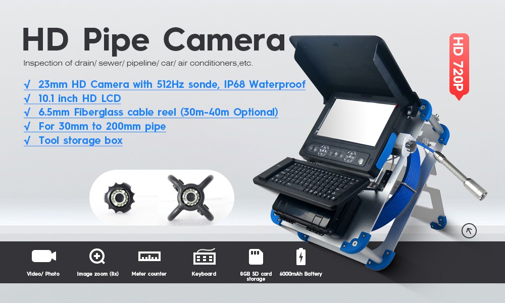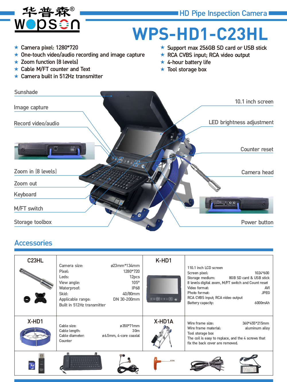 Home > Products > Pipe inspection camera > Dia 30-300mm pipes HD1-C23HL