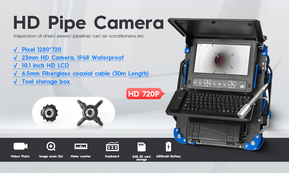 Home > Products > Pipe inspection camera > Dia 30-300mm pipes HD1PRO-C23H