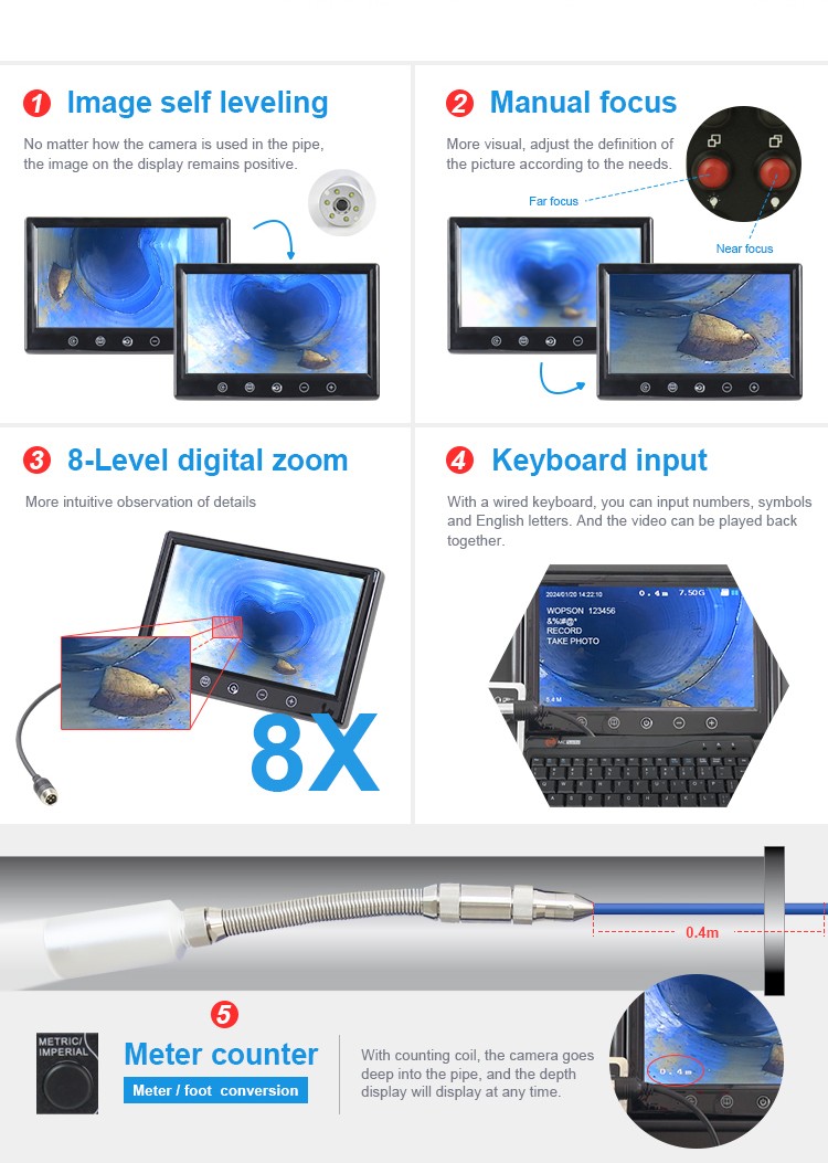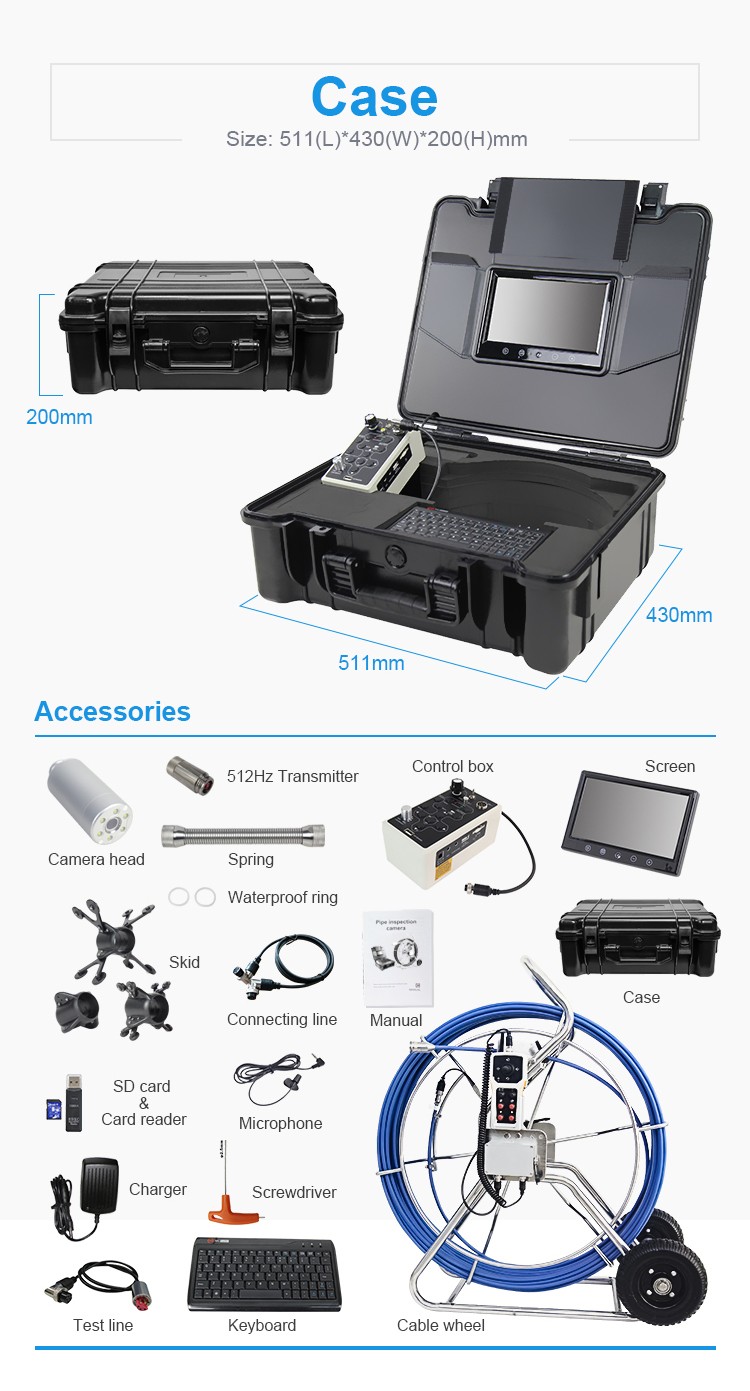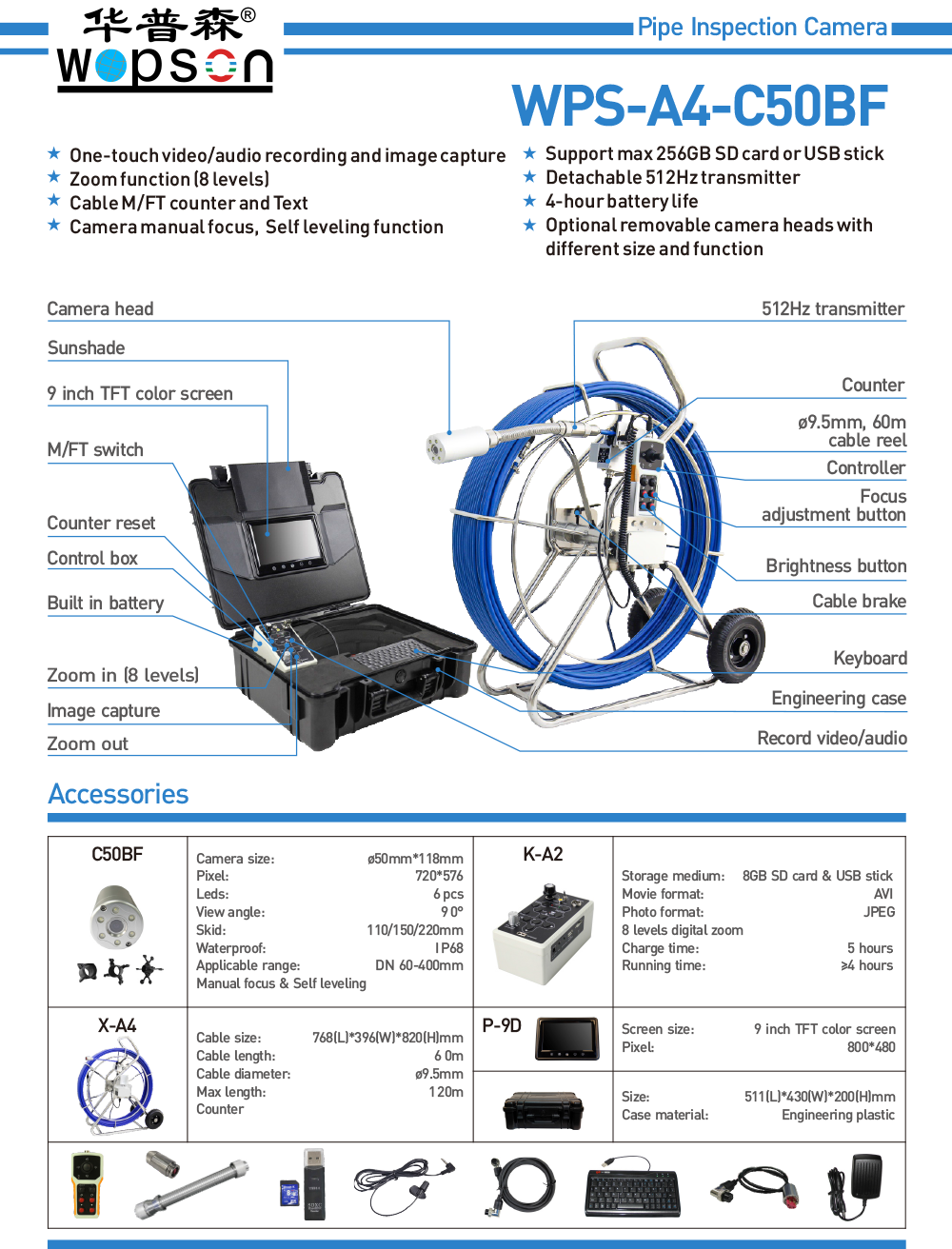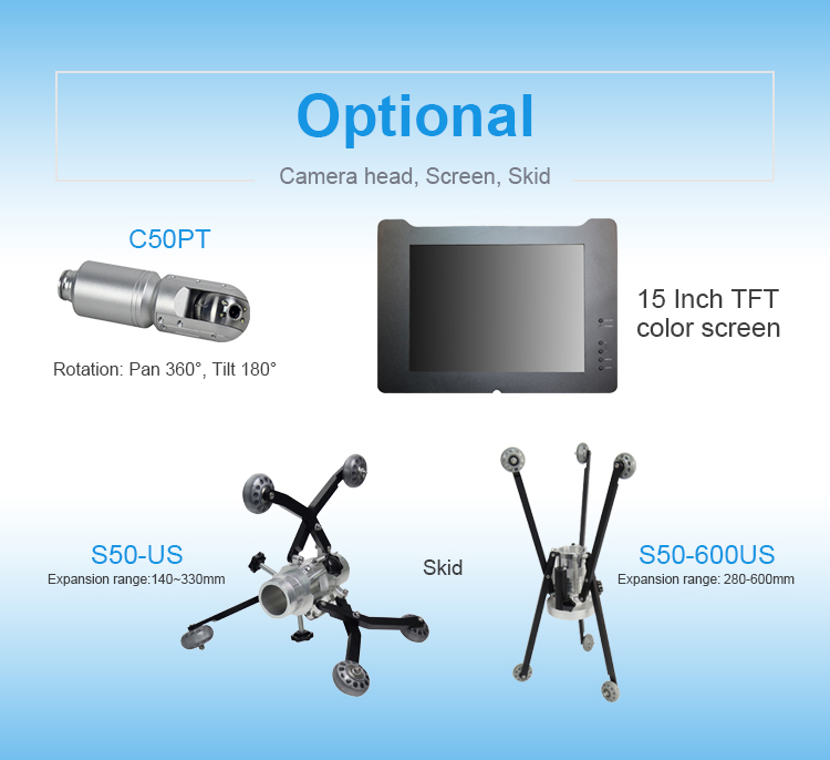 Home > Products > Pipe inspection camera > Dia 60-600mm pipes A4-C50 BF