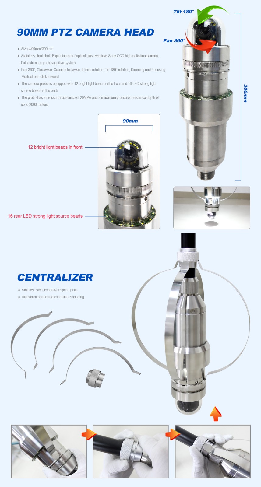 Deep well inspection camera