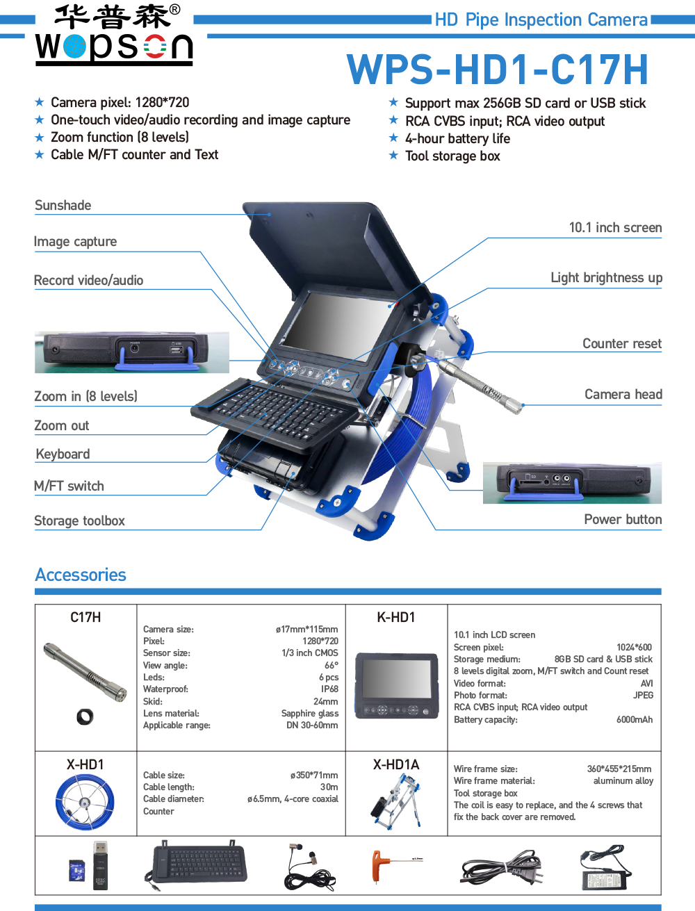 Home > Products > Pipe inspection camera > Dia 10-60mm pipes HD1-C17H