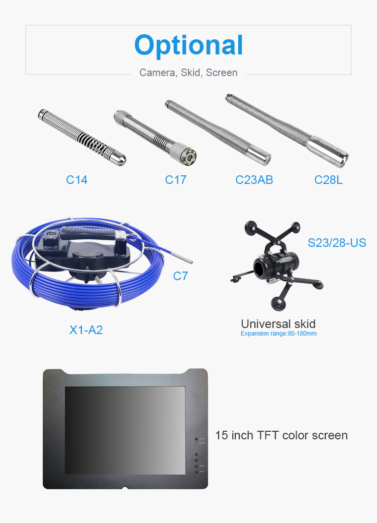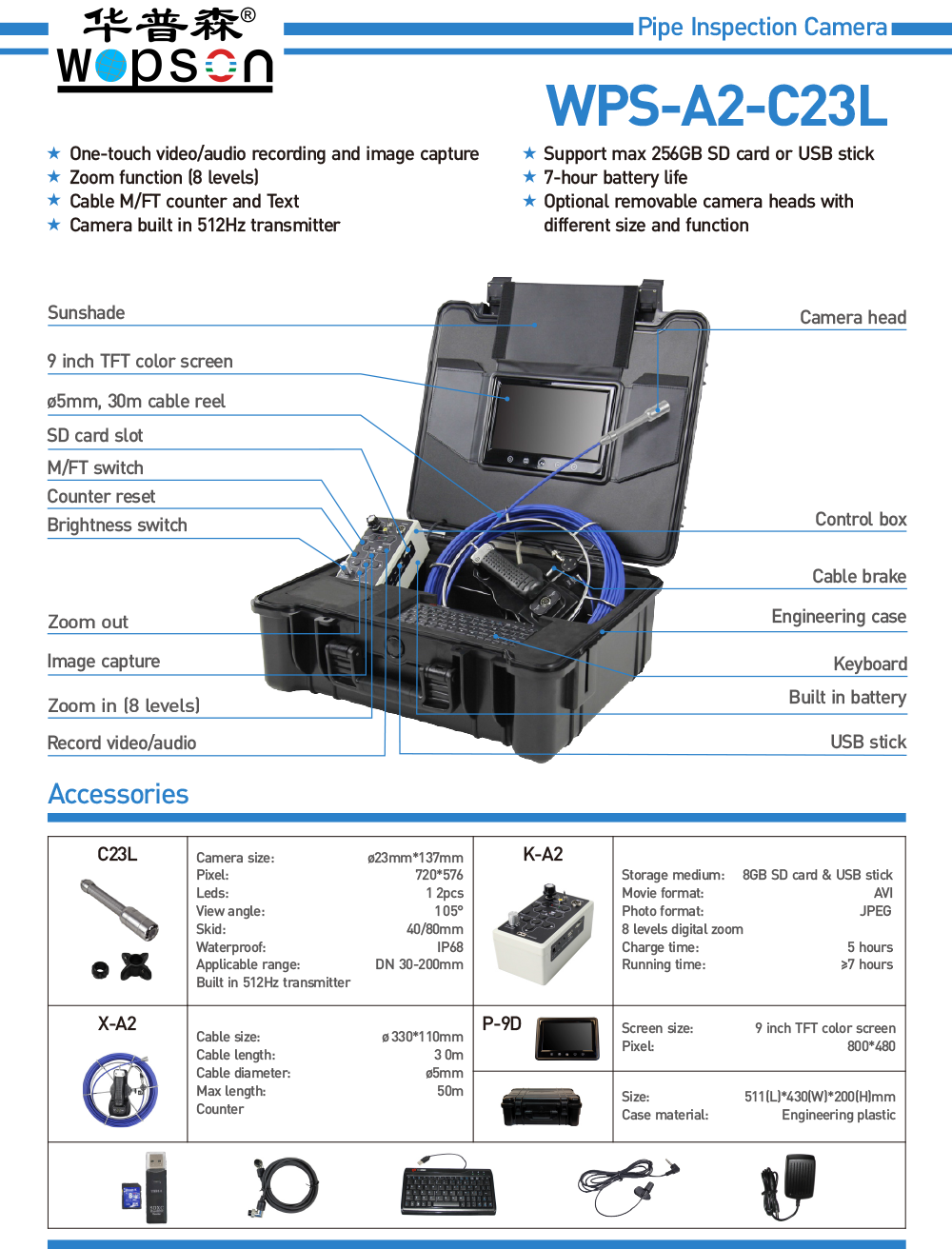 Home > Products > Pipe inspection camera > Dia 30-300mm pipes A2-C23L